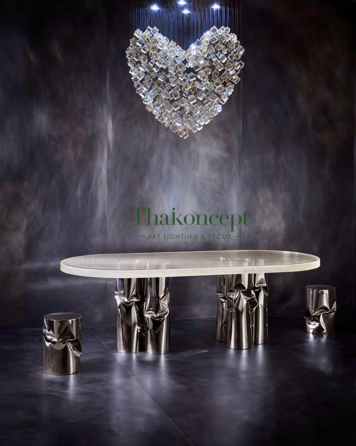 Đèn trang trí đá ngọc lưu ly - Lapis Lazuli của Thaikoncept là hiện thân của sự hoàn mỹ và tinh xảo. Mỗi chiếc đèn đều được chế tác tỉ mỉ với các vát cắt kim cương chính xác, tạo nên hiệu ứng ánh sáng lấp lánh và huyền ảo. Những đường line gợn sóng mềm mại trên bề mặt đá ngọc lưu ly không chỉ tạo nên vẻ đẹp duy mỹ mà còn tượng trưng cho giá trị vĩnh cửu của kim cương, biểu tượng của sự trường tồn và phong nhã.